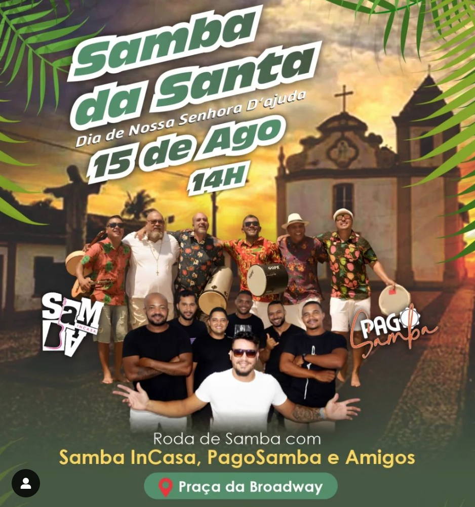 Dia de Nossa Senhora d'Ajuda tem roda de samba e pagode a partir de 14:00hs!!